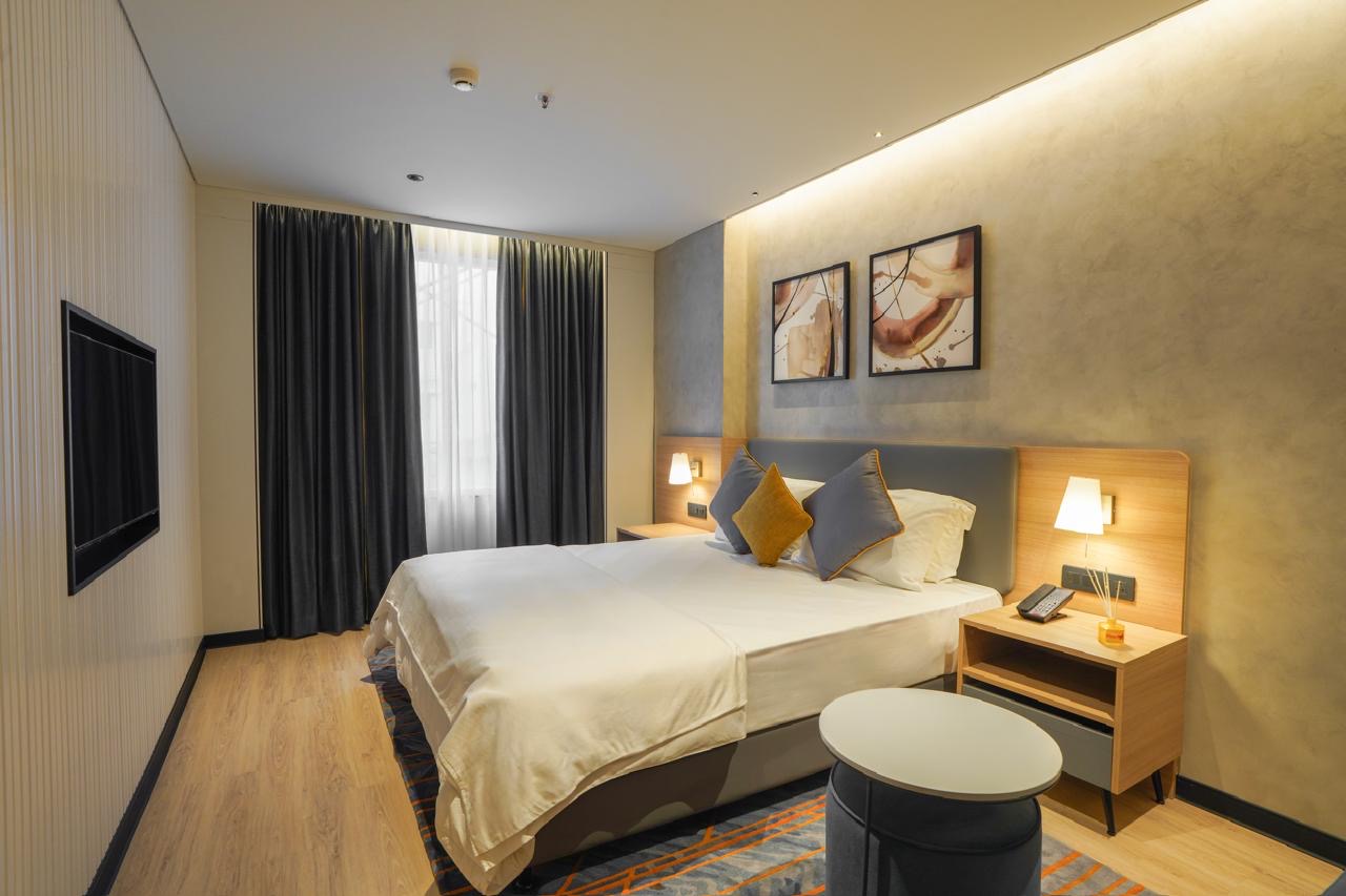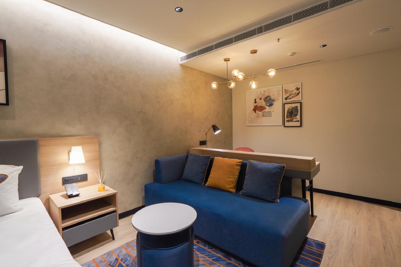 Wake up to soft light, clean lines, and a calm room designed for focused work or quiet rest. High-speed Wi‑Fi, air conditioning, and 24/7 on‑ground support make it easy to settle in. Perfect for solo travellers or couples visiting Bangalore.